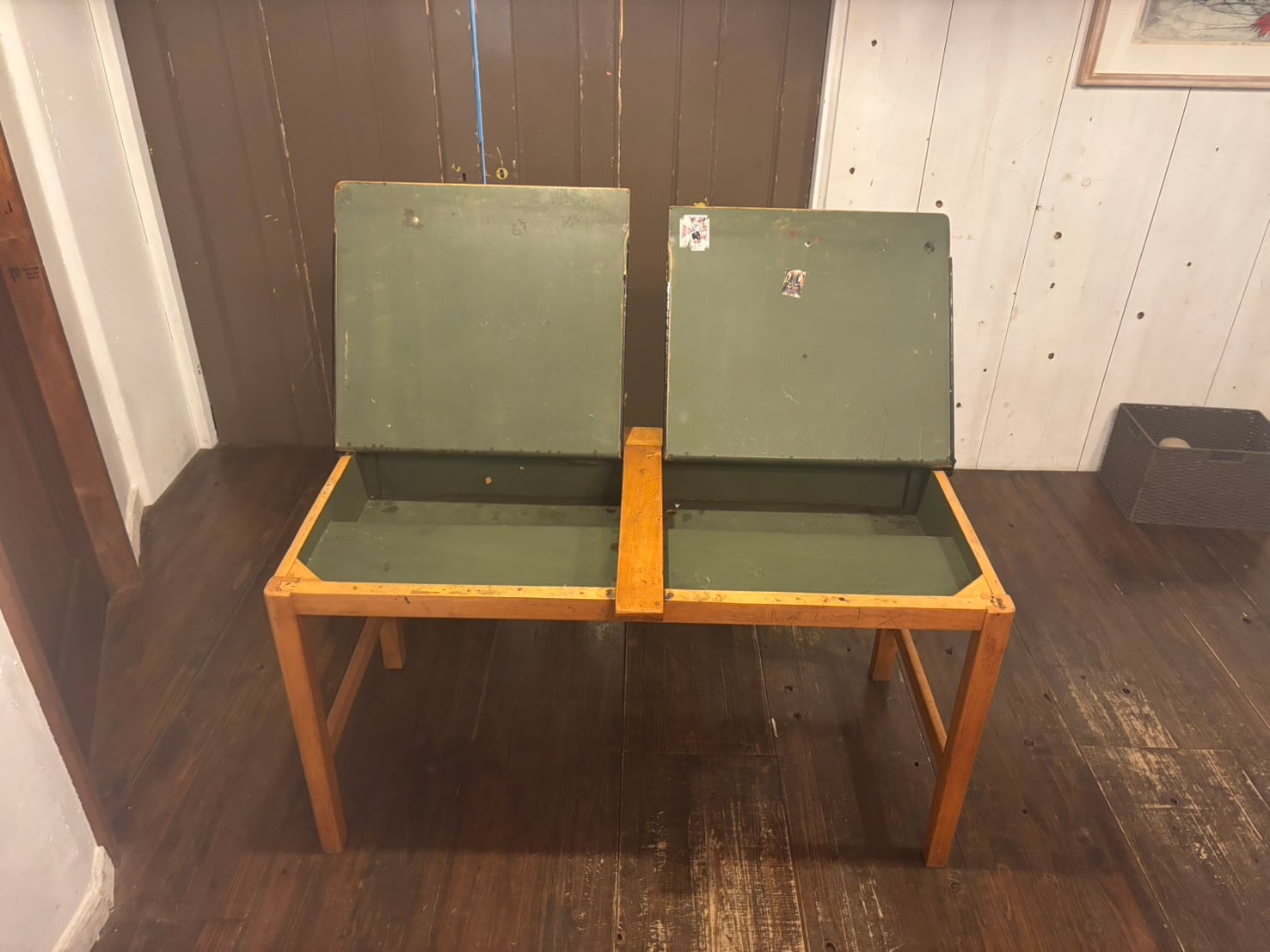 昔懐かしい雰囲気を醸し出す英国のアンティーク二人掛け木製スクールデスク。職人たちの手によって巧みに作り上げられたこのデスクは、独特な味わいと温かみを添えます。シンプルな中にも素朴な美しさが宿るデザインで、木材特有の温もりある質感がどんなインテリアにもぴったりフィットします。