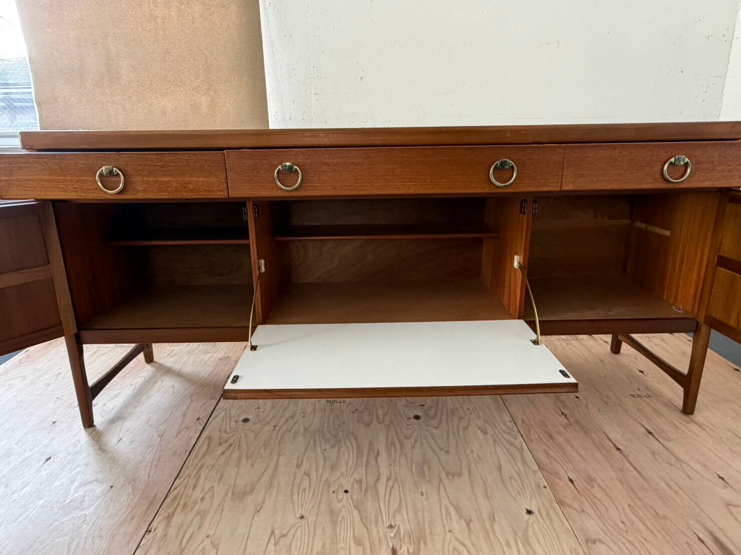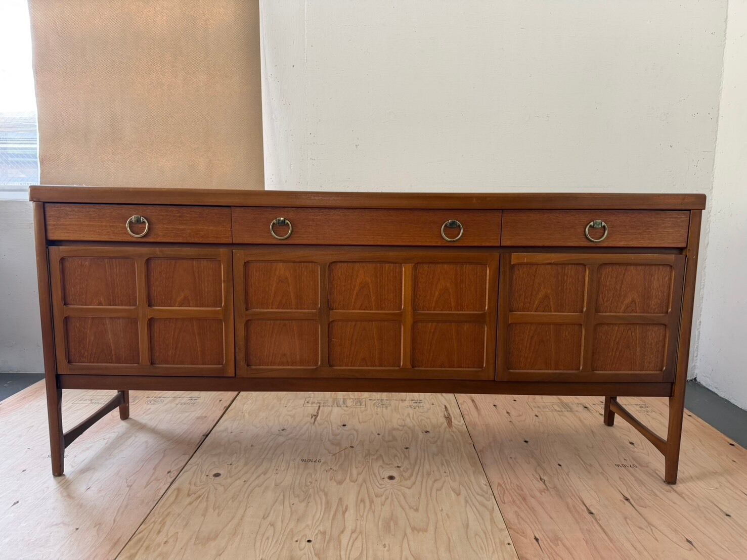 ネイサン社の創業は1916年、イギリス・ロンドンでバーネット・ネイサンが手作りの家具を製造したことに遡ります。イギリスのミドセンチュリーを代表する家具メーカーとして有名になり、チーク材の家具を本格的に生産しました。